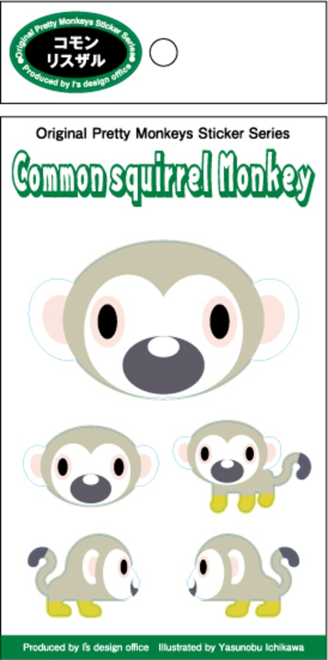 5種類の可愛い猿・ステッカー【コモンリスザル】